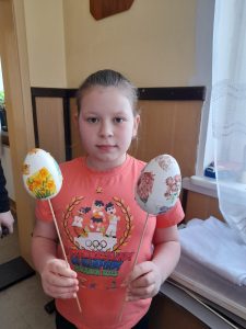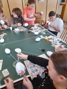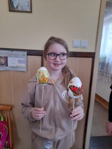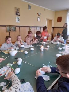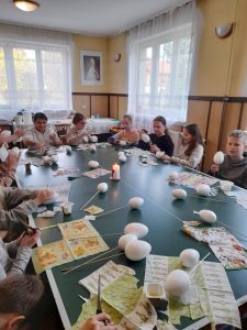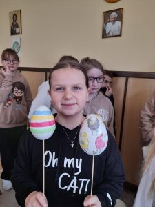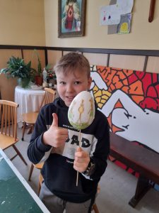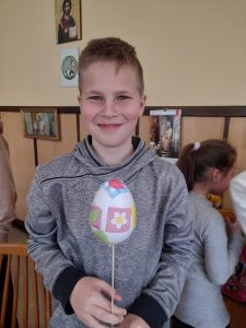 Zaraz po modlitwie zastanawialiśmy się dlaczego akurat jajko ma przedstawiać Jezusa. Kiedy odszukaliśmy odpowiedź na to pytanie, zaczęliśmy pracować nad naszymi „małymi” dziełami. Można było dostrzec wiele kreatywnych i oryginalnych pomysłów. Cały proces był dla nas zabawą i chwilą, w której mogliśmy dać upust naszej wyobraźni. Włożyliśmy sporo wysiłku w dekorację naszych dzieł, ale muszą wyschnąć… Będą ozdabiać nasze domy w czasie Świąt, a także otrzymają je chorzy, do których nasi księża pojadą z Panem Jezusem w Wielkim Tygodniu.
