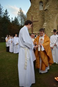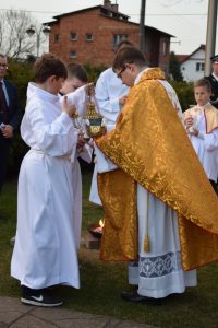 Ciemność rozproszyło światło wniesione do świątyni, rozbłysła ŚWIECA PASCHALNA –  znak Chrystusa zmartwychwstałego. Płomień światła w rękach wiernych jest również znakiem gotowości i czuwania. My, lud w drodze do ojczyzny niebieskiej, podążamy za prawdziwą Światłością, Pasterzem i Stróżem naszych dusz (1 P 2,25), który wyprowadza nas z niewoli grzechu i śmierci.