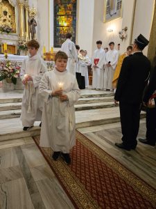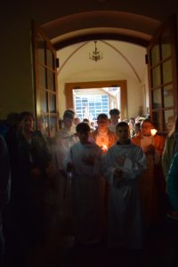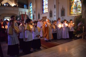 Ciemność rozproszyło światło wniesione do świątyni, rozbłysła ŚWIECA PASCHALNA –  znak Chrystusa zmartwychwstałego. Płomień światła w rękach wiernych jest również znakiem gotowości i czuwania. My, lud w drodze do ojczyzny niebieskiej, podążamy za prawdziwą Światłością, Pasterzem i Stróżem naszych dusz (1 P 2,25), który wyprowadza nas z niewoli grzechu i śmierci.