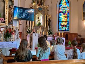 Poniedziałkową majówkę rozpoczęliśmy od procesji do figury Jezusa, chyba najstarszej w wiosce, bo z XIX wieku… dlaczego do niej procesja?