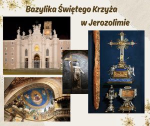 Jak więc krzyż znalazł się w Rzymie. Mama cesarza Konstantyna Helena była chrześcijanką i ona wychowywała swego syna w szacunku do chrześcijan i cesarz Konstantyn zakończył prześladowania chrześcijan w roku 313. Św. Helena pojechała do Ziemi Świętej i chciała odszukać miejsca związane z Panem Jezusem – jego miejsce urodzenia i śmierci. Udało jej się to i w miejscu urodzenia postawiono piękną bazylikę, która stoi do dzisiaj (ciekawostka – nie została zniszczona przez muzułmanów, gdyż na mozaice były wizerunki 3 mędrców, rozpoznali oni w nich swych przodków i nie zniszczyli jej).