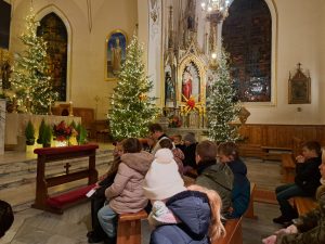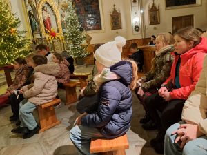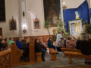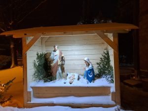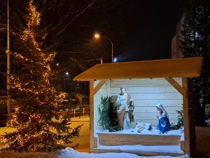 Mamy prawdziwą, śnieżną zimę… Zasypana droga do kościoła, przykryty pierzynką śniegu Jezus w szopce przed kościołem… dzieciaki z rodzicami przygotowujące się do pierwszej spowiedzi i Komunii świętej przyszły dzielnie wieczorem adorować Jezusa w żłóbku, prosząc Go o dobre przygotowanie na to szczególne majowe spotkanie.