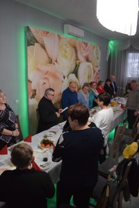 Z kościoła świętowanie przeniosło się na salę, a tam życzenia, dzielenie się opłatkiem i kolędowanie.