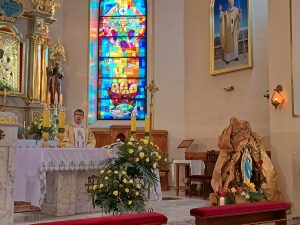 Maryja wybrała to miejsce aby dać nam wszystkim ZNAK. Znak przede wszystkim bliskości Boga…. Maryja powiedziała do Bernadety między innymi „nie obiecuje ci szczęścia na tym świecie, ale w przyszłym”. I to jest jakieś szczególne przesłanie każdego sanktuarium, każdego miejsca świętego, każdego kościoła… Bóg chce nam przypomnieć, że źródło naszego szczęścia, pełnia naszego szczęścia jest w świecie przyszłym, w wieczności, kiedy każdy z nas będzie mógł cieszyć się nie tylko widokiem Maryi, ale widokiem Boga samego. Jednocześnie Maryja chce nam pokazać, że to nasze życie na ziemi nie jest niepotrzebne, bezwartościowe, Maryja przychodzi aby nam to życie na ziemi udoskonalić, aby podnieść nasz wzrok, dodać nadziei, podnieść na duchu bo takie jest właśnie zadanie wiary chrześcijańskiej, by człowiek pięknie w każdym momencie swojego życia odkrywał piękno, które Bóg nam powierza.