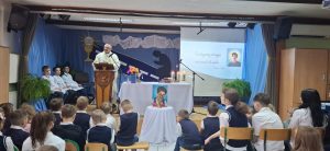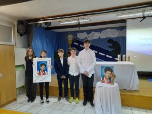 Uczniowie wraz z nauczycielami uczestniczyli we Mszy Świętej oraz adoracji, powierzając Bogu swoje intencje i czerpiąc inspirację z życia Błogosławionego.