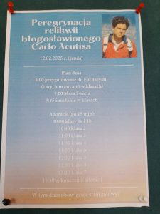 W środę, 12 lutego w Szkole Podstawowej SPSK im. Jana Pawła II w Porąbce miało miejsce wyjątkowe i poruszające wydarzenie – ​​peregrynacja relikwii błogosławionego Carla Acutisa.