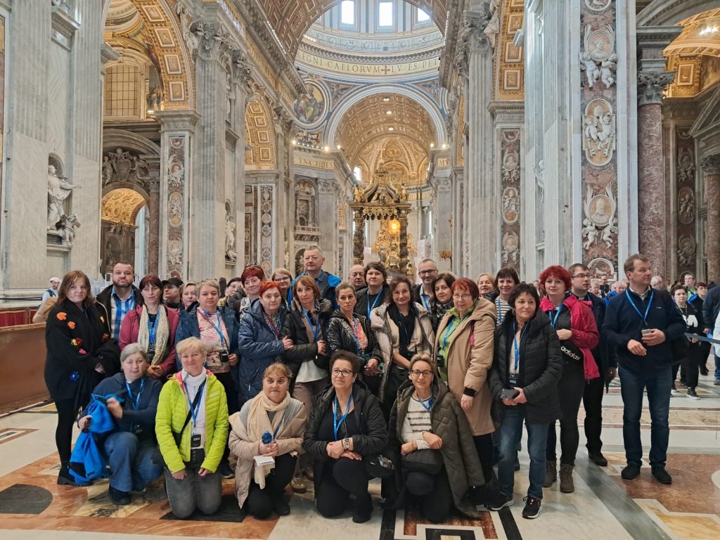 Niezwykłe przeżycie… modlitwa, śpiew, skupienie, radość wspólnoty. Przechodzimy przez Drzwi niosąc własne intencje… Wreszcie stanęliśmy przy Konfesji nad grobem św. Piotra i złożyliśmy Wyznanie Wiary i całując krzyż zakończyliśmy  Jubileuszową  Drogę Nadziei. W najbliższych dniach przejdziemy przez następne Drzwi pozostałych 3 bazylik… Dzielimy się  naszą  radością. Pozdrawiamy ks. Proboszcza wraz z całą Parafią