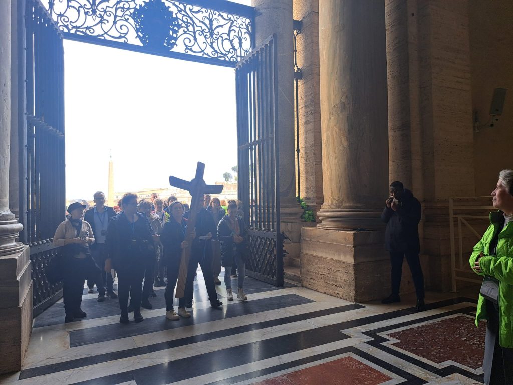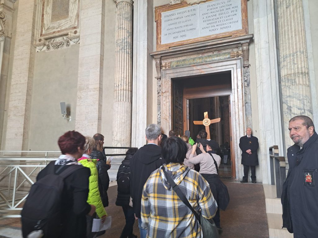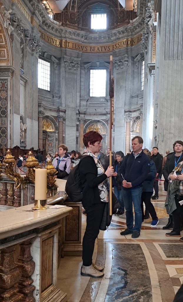 Niezwykłe przeżycie… modlitwa, śpiew, skupienie, radość wspólnoty. Przechodzimy przez Drzwi niosąc własne intencje… Wreszcie stanęliśmy przy Konfesji nad grobem św. Piotra i złożyliśmy Wyznanie Wiary i całując krzyż zakończyliśmy  Jubileuszową  Drogę Nadziei. W najbliższych dniach przejdziemy przez następne Drzwi pozostałych 3 bazylik… Dzielimy się  naszą  radością. Pozdrawiamy ks. Proboszcza wraz z całą Parafią