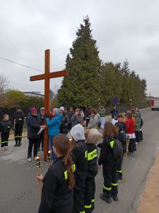 Niech nam towarzyszy Święty Jan Paweł II. Przeżywaliśmy przecież już kolejną Jego rocznicę odejścia do nieba, ale nie po to żeby tylko to wspominać ale po aby przypominać sobie Jego nauczanie… A może moment, który tak mocno utkwił w pamięci – On wpatrzony wtedy w Wielki Piątek roku 2005 w krzyż – w kaplicy przyciskał do serca, do czoła, do ust w krzyż Zbawiciela… Niech ten znak naszego zbawienia KRZYŻ będzie nie tylko wykonywany przez nas przy modlitwie, w naszych domach rodzinnych, na rozpoczęcie i zakończenie mszy, ale właśnie będzie dla nas i świata ZNAKIEM NADZIEI. To już nie znak hańby i odrzucenia, ale znak triumfu zwycięstwa Chrystusa nad grzechem śmiercią i szatanem, który prowadzi nas do zmartwychwstania.