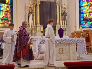Z błogosławieństwem na zakończenie Eucharystii wyruszono w DROGĘ… Hasło tegorocznych rozważań: Moje życiowe decyzje w perspektywie Krzyża…