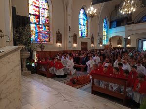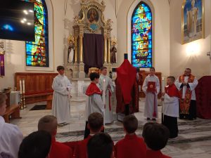 Kolejność KRZYŻ – KOMUNIA ŚWIĘTA uświadamia nam, że źródło sakramentów Kościoła wypłynęło z przebitego boku Chrystusa. Przyjęliśmy Ciało Pańskie. Jest Ono znakiem jedności Wieczernika i Krzyża – ofiary, która prowadzi do życia wiecznego.