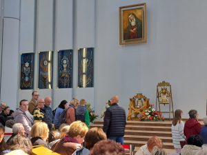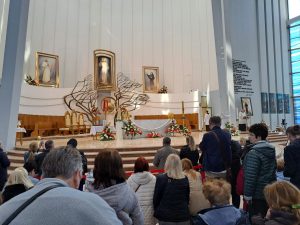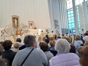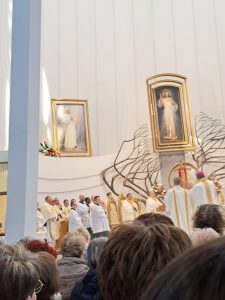 Podobnie jak w roku ubiegłym przerzuciliśmy „most modlitwy” między naszą parafią, a Łagiewnikami poprzez pielgrzymów, którzy razem z ks. Arielem nawiedzili Sanktuarium Bożego Miłosierdzia… Rozproszyliśmy się wśród tłumów wiernych i o 12.30 uczestniczyliśmy we mszy świętej, której celebransem był ks.biskup naszej diecezji – Roman Pindel.