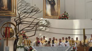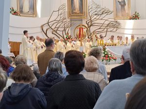 I w tym roku włączyliśmy się w wielkie dziękczynienie, można powiedzieć całego świata za 25-lecie kanonizacji Siostry Faustyny i ustanowienia Święta Miłosierdzia dla Kościoła powszechnego. Hasłem Święta są słowa związane z przeżywanym Rokiem Jubileuszowym: „Miłosierdzie źródłem nadziei”.