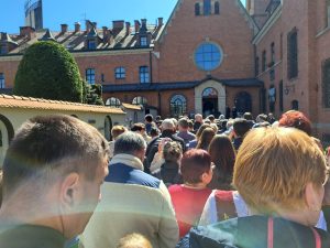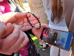 Po mszy świętej czekaliśmy w różnych miejscach na Godzinę Miłosierdzia i wspólną modlitwę. Jak można wykorzystać współczesne media, będąc blisko sanktuarium, ale nie w zasięgu telebimu, lecz w drodze do kaplicy sióstr i grobu świętej Faustyny.