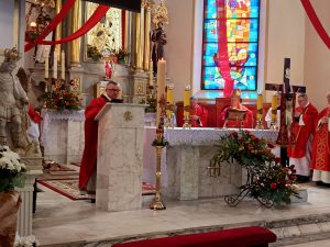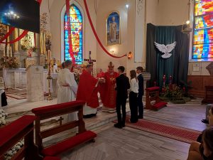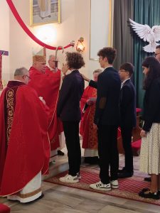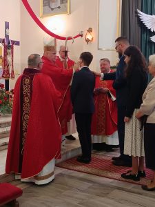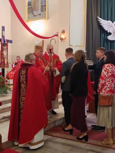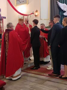 W piękny, pierwszomajowy czwartek przybył do naszej parafii ksiądz biskup PIOTR GREGER, by udzielić naszej młodzieży sakramentu Ducha Świętego.