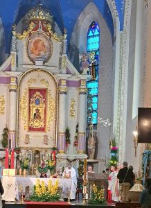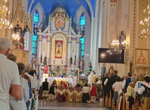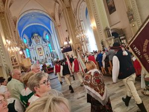 Najpierw radość spotkania na mszy świętej pod przewodnictwem Pasterza Diecezji Bielsko – Żywieckiej ks.bp. Romana Pindla, który w swojej homilii przybliżył dzieje sanktuarium w Rajczy, którego sercem jest obraz Matki Bożej Miłosierdzia podarowany przez króla Jana Kazimierza powstającej w XVII wieku parafii. Wizerunek Maryi, który był niegdyś osobistą relikwią króla, stał się symbolem Bożego miłosierdzia i opieki nad mieszkańcami gór. Kaznodzieja przypomniał słowa, jakie wypowiedział w czasie koronacji obrazu w 2017 roku o Maryi jako Matce Miłosierdzia, która nie tylko przyjęła dar króla, ale wciąż udziela łask tym, którzy przybywają do Rajczy. Biskup przypomniał wtedy, że w tym miejscu należy wypraszać nie tylko uzdrowienie i nawrócenie, ale również pojednanie i zdolność przebaczania.