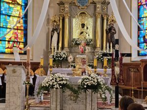 Jako, że nadal nasze ołtarze boczne są w renowacji, to w bocznym ołtarzu zagościł u nas Pan Jezus Dobry Pasterz.
