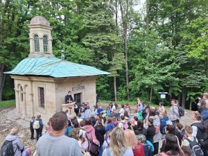Dróżki kalwaryjskie przemierzali od godziny 10.00. Jakże inaczej wygląda ta szczególna Droga krzyżowa… Czy poczuli się jak w Jerozolimie wdrapując się na Kalwaryjskie wzgórze? Był to czas modlitwy we wspólnym wędrowaniu.