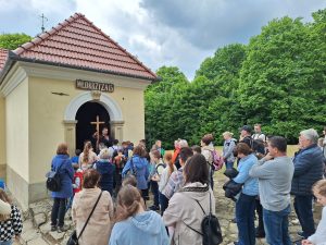 Dróżki kalwaryjskie przemierzali od godziny 10.00. Jakże inaczej wygląda ta szczególna Droga krzyżowa… Czy poczuli się jak w Jerozolimie wdrapując się na Kalwaryjskie wzgórze? Był to czas modlitwy we wspólnym wędrowaniu.