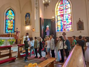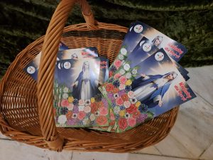 W koszu dzieci złożyły swe plansze majowe, dziękowaliśmy Maryi za czas tej pięknej modlitwy przy naszym „odmienionym” ołtarzu bocznym, bo trwa nadal jego remont.Dzień po dniu u stóp Maryi, ale i Jezusa w monstrancji pojawiały się kolejne kwiaty z majowego bukietu, tak jak na dziecięcych planszach.