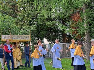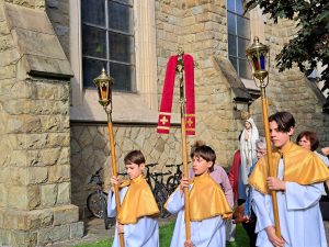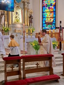 Ostatni śpiew Litanii Loretańskiej rozbrzmiewał w czasie procesji. Błogosławieństwo Najświętszym Sakramentem… A, że jutro świętują DZIECI to było i coś słodkiego.