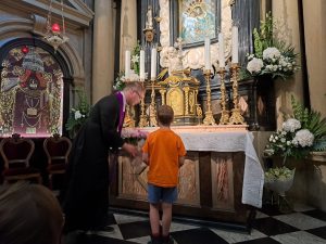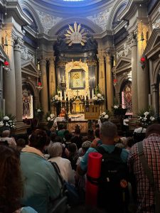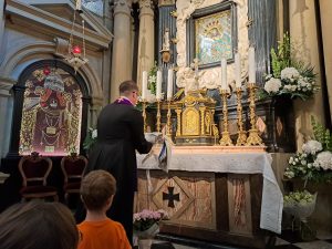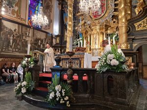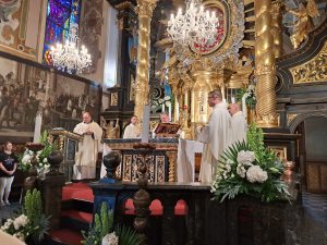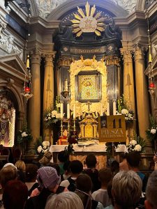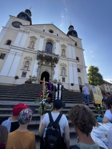 Pielgrzymi z autokaru powitali pielgrzymujących pieszo i już razem przeszli do Bazyliki na spotkanie z Maryją w jej cudownym wizerunku i Jezusem w Eucharystii… BOGU NIECH BĘDĄ DZIĘKI za ten piękny czerwcowy wekeend.