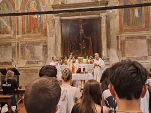 Kasia, Zosia, Marysia i Mikołaj razem z Młodymi trzech parafii rozpoczęli w czwartkowy wieczór radosne pielgrzymowanie w stronę Włoch. Otaczamy ich naszą modlitwą i liczymy na relacje. 🙂