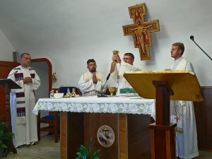 „Kilka migawek z naszej bazy – sobota pochmurna, ale ciepło i morze ciepłe, więc leniuchowanie. Nie zapomnieliśmy o Eucharystii… „- napisali: