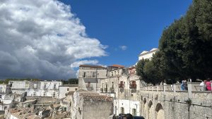 Naszym głównym celem była słynna Grota św. Michała Archanioła, jedno z najważniejszych miejsc pielgrzymkowych we Włoszech i jedno z najstarszych sanktuariów poświęconych temu Archaniołowi w Europie… Sanktuarium „zdobyliśmy”, ale nie mamy zdjęcia z samej groty, gdyż była msza święta… Zostaje to w naszym sercu.