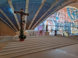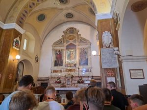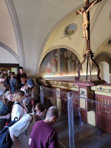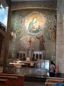 Drugim miejscem, które mieliśmy okazję dzisiaj odwiedzić SAN GIOVANI ROTONDO – miasto, w którym żył św. ojciec Pio. Zaczęliśmy od zwiedzania Bazyliki Matki Bożej Łaskawej, w której św. ojciec Pio modlił się, odprawiał Msze Święte i udzielał sakramentu spowiedzi. Widzieliśmy kryptę, w której przed ekshumacją był pochowany, muzeum gromadzące różne przedmioty związane z życiem świętego, jak na przykład szaty, których używał podczas swojej ostatniej Mszy Świętej oraz celę klasztorną, w której mieszkał. Mieliśmy okazję pomodlić się na dawnym chórze kościoła, przed krzyżem, pod którym św ojciec Pio otrzymał swoje stygmaty. Później odwiedziliśmy Nową Bazylikę, wybudowaną w odpowiedzi na rosnącą liczbę pielgrzymów po kanonizacji św ojca Pio. W krypcie pod bazyliką modliliśmy się przy ciele świętego. Zwiedzanie zakończyliśmy Mszą Świętą w kościele, w którym ojciec Pio zaczynał swoją posługę w San Giovanni Rotondo.