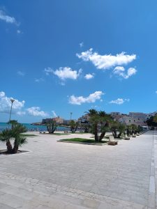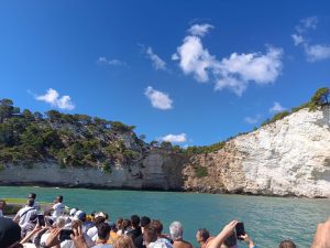 W czwartek udaliśmy się na rejs statkiem z miasta Rodi Garganico do Vieste. Po drodze mieliśmy okazję podziwiać piękne widoki, w tym nietypowe formacje skalne jak na przykład kamienne łuki, czy groty, do których wpływaliśmy. W Vieste cieszyliśmy się czasem wolnym, który wykorzystaliśmy na zwiedzanie miasta i posiłek. Do Rodi wróciliśmy troszkę przemoczeni, ale bardzo zadowoleni. Zwiedzanie zakończyliśmy spacerem wzdłuż wybrzeża do San Menaio.