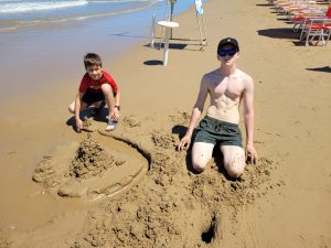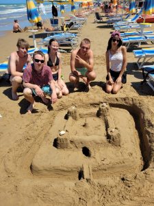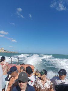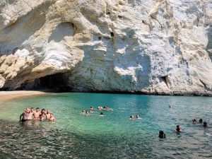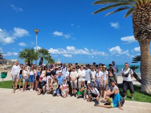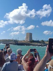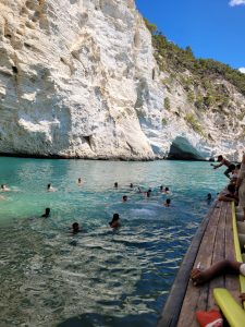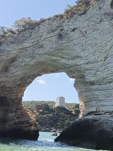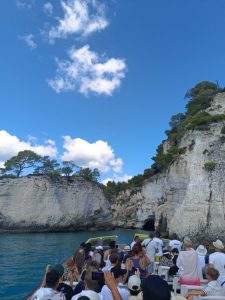 W czwartek udaliśmy się na rejs statkiem z miasta Rodi Garganico do Vieste. Po drodze mieliśmy okazję podziwiać piękne widoki, w tym nietypowe formacje skalne jak na przykład kamienne łuki, czy groty, do których wpływaliśmy. W Vieste cieszyliśmy się czasem wolnym, który wykorzystaliśmy na zwiedzanie miasta i posiłek. Do Rodi wróciliśmy troszkę przemoczeni, ale bardzo zadowoleni. Zwiedzanie zakończyliśmy spacerem wzdłuż wybrzeża do San Menaio.