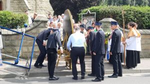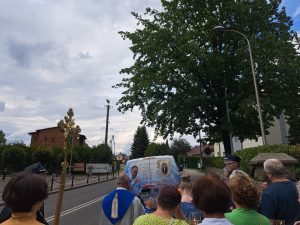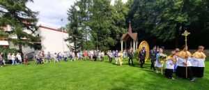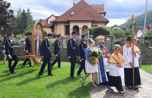 O godzinie 15.00 zgromadzono się w kościele, aby modlić się najpierw Koronką do Bożego Miłosierdzia. Ksiądz proboszcz Zdzisław Grochal odczytał modlitwę zawierzenia i ze śpiewem pieśni maryjnych, przy biciu dzwonów obraz został poniesiony w procesji przez Druhów Strażaków wokół naszego kościoła, następnie włożony do samochody kaplicy i ruszył w drogę do następnych parafii, tym razem w diecezji tarnowskiej.