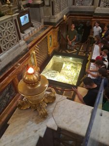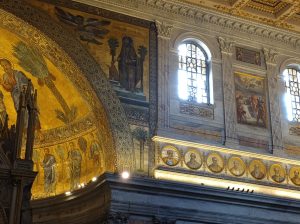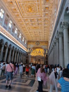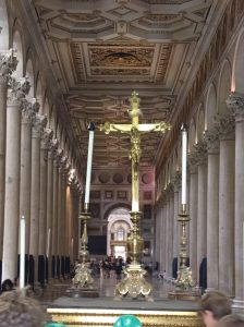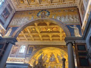 W sobotę odwiedziliśmy Bazylikę Świętego Pawła za Murami. Z racji Roku Jubileuszowego główne Drzwi Święte były otwarte, przeszliśmy przez nie ze swymi intencjami. Modliliśmy się przy grobie św. Pawła. To tutaj znajduje się galeria z wizerunkami wszystkich papieży.