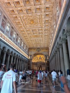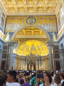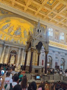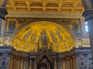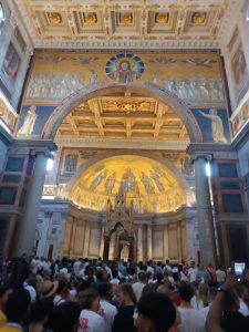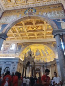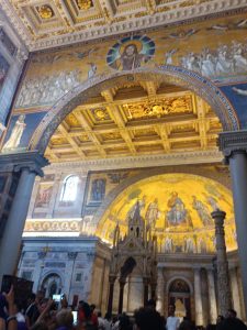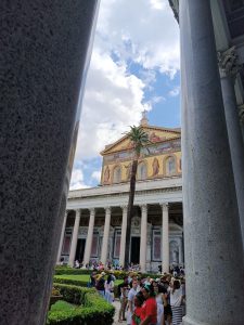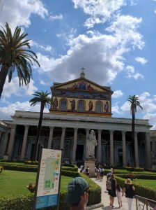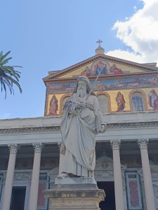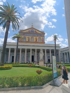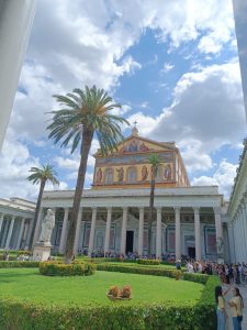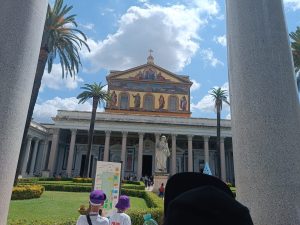 W sobotę odwiedziliśmy Bazylikę Świętego Pawła za Murami. Z racji Roku Jubileuszowego główne Drzwi Święte były otwarte, przeszliśmy przez nie ze swymi intencjami. Modliliśmy się przy grobie św. Pawła. To tutaj znajduje się galeria z wizerunkami wszystkich papieży.