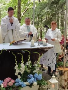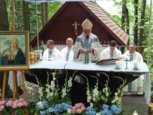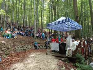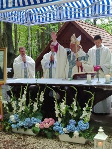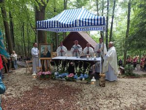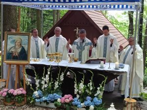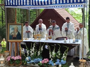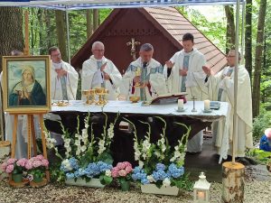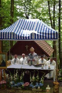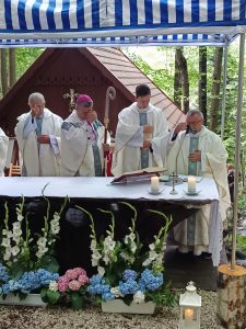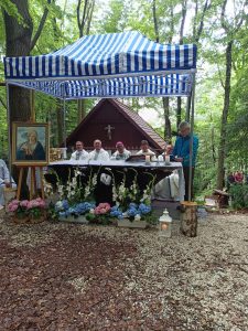 Tegoroczna niedziela 3 sierpnia zapowiadała się deszczowo. Sporo deszczu towarzyszy nam w ostatnim czasie, ale za przyczyną Maryi, Opiekunki tego miejsca na pochmurnym niebie w czasie Eucharystii zaświeciło słońce.