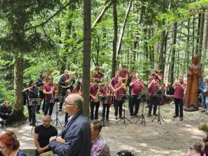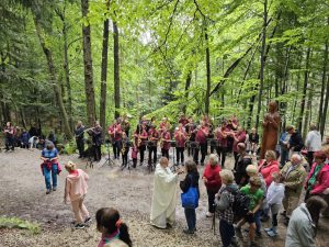 Nie zabrakło tradycyjnie Orkiestry Dętej z Roczyn, która dźwiękami instrumentów wzbogacała jak zawsze naszą modlitwę. Czuwanie modlitewne przed sumą odpustową i Liturgię Słowa poprowadziła nasza Wspólnota Chrystusa Zmartwychwstałego „Galilea”.
