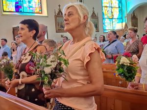 W tegoroczne Święto Wniebowzięcia Matki Bożej i my przyszliśmy na msze świętą z BUKIETAMI kwiatów, ziół, pędów zbóż, traw i owoców, aby po raz kolejny zawierzyć się Maryi Zielnej, jak nazywamy ją w polskiej tradycji.