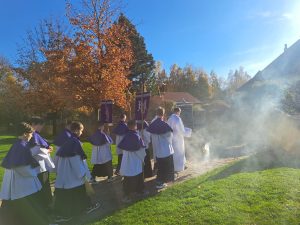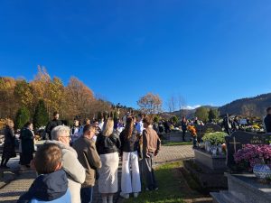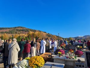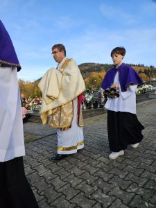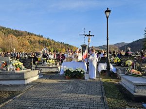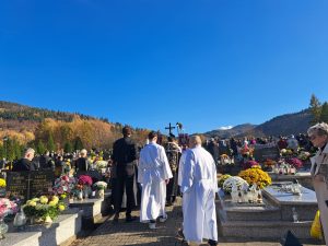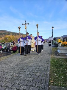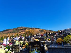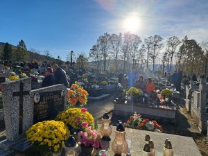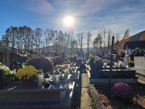Piękna, jesienna pogoda zagościła nad naszym cmentarzem… Do tego powiew wiatru jakby Ducha Świętego, który przestał po Eucharystii… Dzisiaj dzień kiedy przybywa do naszych serc pamięć o naszych bliskich i myśl o świętych obcowaniu… Więc płynie modlitwa i światło pamięci…