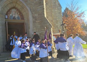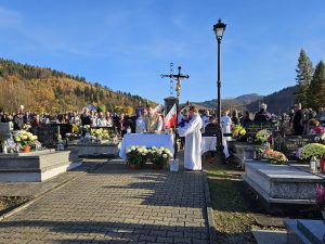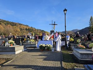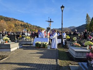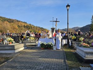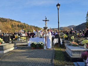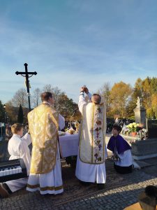 Myśl z kazania ks. proboszcza Zdzisława Grochala: Chrześcijańska nadzieja jest mocniejsza niż śmierć. Śmierć chrześcijanina, podobnie jak śmierć Jezusa jest Paschą – przejściem do nowej rzeczywistości. Ta prawda przyjętą nie tylko teoretycznie, ale tez sercem już teraz wnosi w nasze życie nadzieje i pokój. „Próżna byłaby nasza wiara, gdyby Chrystus nie zmartwychwstał”. (por. 1 Kor 15, 14) Wspominając naszych bliskich, nad których mogiłami się pochylamy nie tylko z zadumą, ale przede wszystkim z modlitwą, darem tej Eucharystii z ufnością wołajmy: Dobry Jezu a nasz Panie, daj im wieczne spoczywanie. Światłość wieczna niech im świeci, gdzie królują wszyscy święci. Gdzie królują z Tobą, Panem, aż na wieki wieków. Amen.