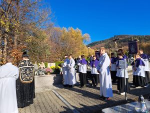 Na cmentarzu PIĘĆ MODLITEWNYCH STACJI wśród grobów, odczytane intencje, wypominki i „dziesiątek” z tajemnic chwalebnych różańca…