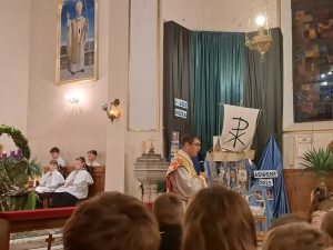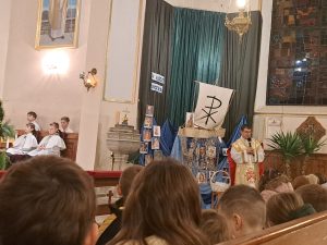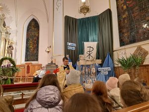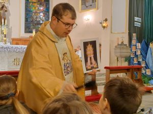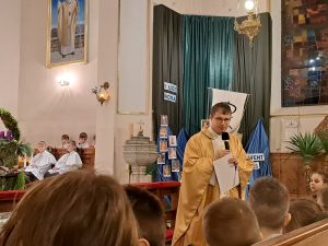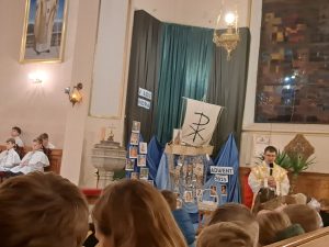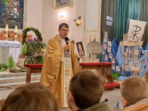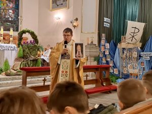 Już mamy papieża, o którym mówimy św. Jan Paweł II. Wiele można mówić o papieżu Janie Pawle II wiele słyszeliście o nim wspomnień od swoich dziadków, czy rodziców. Ja dzisiaj chciałbym zwrócić na jedną rzecz w jego pontyfikacie. Jan Paweł II to papież świętych. Zrobił wiele ważnych rzeczy, ale jedną z najważniejszych było to, że bardzo często ogłaszał w kościele nowych świętych i błogosławionych. Chciał, aby każdy kraj,  każda wspólnota miały swoich świętych. Jemu też zawdzięczamy ogłoszenie wielu świętych naszych rodaków z Polski. Świętego Maksymiliana, Świętą Kingę. Brata Alberta. Rafała Kalinowskiego. Świętą Jadwigę i wielu innych. Myślę, że papież Jan Paweł II to papież, który zachęcał nas do świętego życia, bez względu na to, ile mamy lat i jakie wykonujemy zadania czy obowiązki, możemy to czynić święcie.