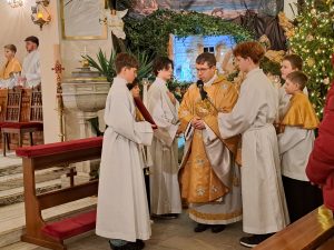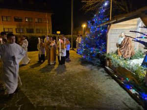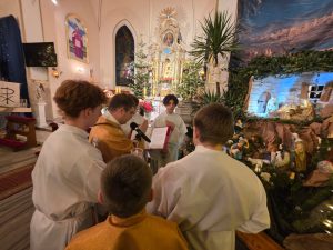 Otwiera się przed nami na nowo czas łaski i radości. Czas spokoju i wdzięczności za dar wiary, nadziei i miłości jakie Bóg odnawia w nas przez przyjście Jego Syna. Każda większa czy mniejsza nasza troska o liturgie całego adwentu, o przygotowanie szopki, oprawy muzycznej, każda nasza modlitwa i ofiarowane cierpienie tych wszystkich, którzy złożeni są na łożu boleści może właśnie wydać owoc tego, że JEZUS ZRODZI SIĘ DZISIAJ W NASZYM SERCU NA NOWO.
