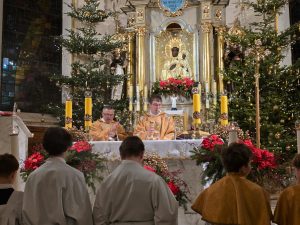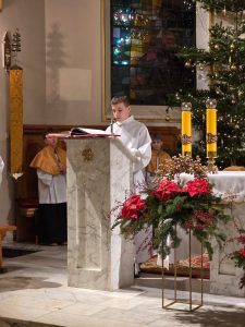 Z radością głośmy więc przyjście Pana. Bóg stał się jednym z nas, dzięki temu naprawdę my możemy być z Bogiem. Na początku mszy pasterskiej kapłan zanosił błaganie Boże, Ty sprawiłeś, że ta Najświętsza Noc zajaśniała blaskiem prawdziwej światłości, daj byśmy w niebie mogli uczestniczyć w radości Twojego Syna, którego tajemnicę Wcielenia poznaliśmy na ziemi. Niebo, tam jest nasz cel. „Naród kroczący w ciemnościach ujrzał światłość wielką nad mieszkańcami kraju mroków światło zabłysło”. Prorok Izajasz mówił te słowa tysiąc lat przed przyjściem Mesjasza. Dziś się narodził Chrystus Pan Zbawiciel – śpiewaliśmy w dzisiejszym psalmie. Tajemnica ta staje się właśnie na nowo w każdym z nas. Ukazała się łaska Boga, która niesie zbawienie wszystkim ludziom. Ne bójcie się – to orędzie anioła, który wypowiedział do pasterzy – zwiastuje wam radość wielką dziś bowiem w mieście Dawida narodził się wam Zbawiciel, którym jest Mesjasz Pan. A to będzie znakiem dla was: znajdziecie niemowlę owinięte w pieluszki i leżące w żłobie.