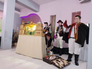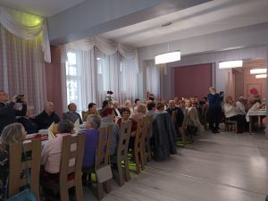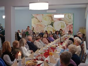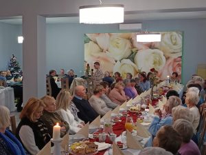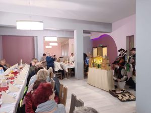 Po mszy świętej druga część spotkania miała miejsce przy stole w „Hortensji” – życzenia, łamanie się opłatkiem i poczęstunek. Szczególnym momentem spotkania były Jasełka zaprezentowane przez zaproszonych Gości – Zespół Artystyczny „Roztoka” z Czernichowa.