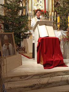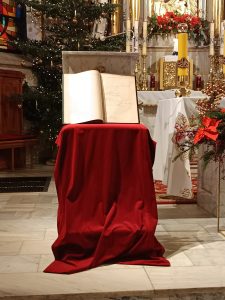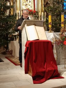 Przy ołtarzu umieszczono Księgę Róż Różańcowych naszej parafii, w której odnotowani są wszyscy modlący się przez lata w tej Wspólnocie. Odczytano zmarłych członków w minionym roku i zastępujących ich w tej sztafecie modlitwy.