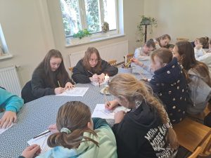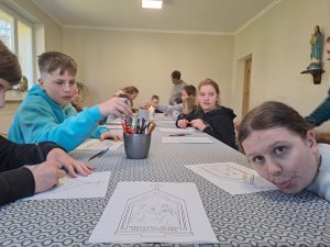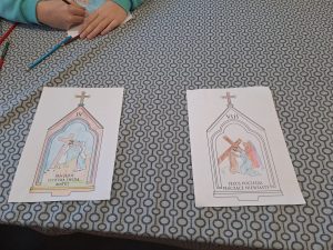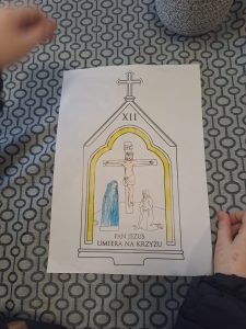 Wczoraj dzieci uczestniczyły w DRODZE KRZYŻOWEJ, w której pragną  odkrywać tajemnicę MIŁOŚCI JEZUSA… Dlatego tematem sobotniego spotkania była droga krzyżowa. Na początku chwilę porozmawialiśmy o tym, czym ona jest i dlaczego chrześcijanie do niej wracają. Potem dzieci dostały zadanie -każde z nich kolorowało jedną ze stacji drogi krzyżowej, a w czasie kolorowania zastanawiało się, co dana scena może oznaczać w ich życiu.