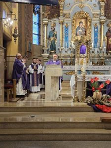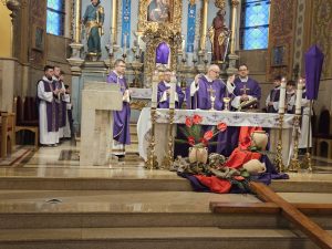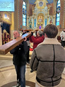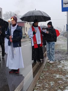 Pątnicza Droga rozpoczęła się od Eucharystii sprawowanej przez Duszpasterzy naszych parafii. Ks. proboszcz Wiesław Ostrowski zaprosił do wzbudzenia intencji modlitewnej. Drogę krzyżową poprowadził ks. Marcin Madura z Parafianami, czytającymi rozważania  kolejnych stacji. Po przeszło dwugodzinnej wędrówce zakończono wspólną modlitwę w naszym kościele, a ks. proboszcz Zdzisław Grochal  zaprosił do tej szczególnej DROGI za rok –  w piątek  przed Niedzielą Palmową 2027, będzie to 19 marca 2027 roku.