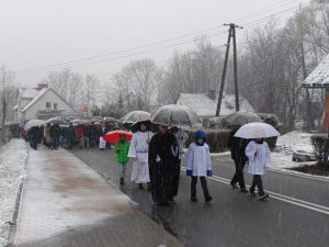 Tegoroczną Drogę krzyżową, tym razem CZANIEC – PORĄBKA za sprawą pogody „można by nazwać ekstremalną”. Sprawdza się przysłowie „w marcu jak w garncu”. Po pięknym początku marca podarowała nam Opatrzność chłód i śnieg. Ale to nie przeszkodziło w licznym udziale wiernych obu parafii.